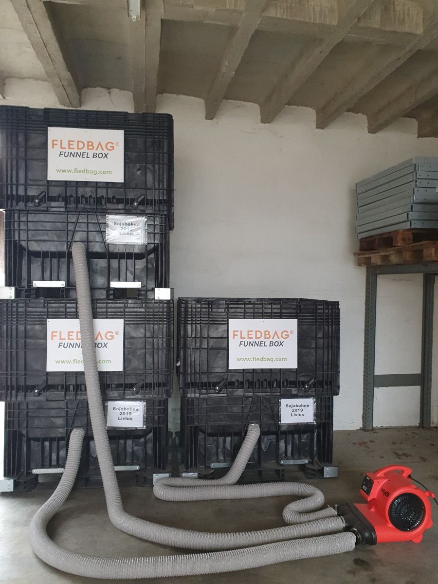 Fledbag Funnel Box on metallivaba, korrosioonikindlast materjalist konteiner mahutavusega 1600 liitrit, mille konstruktsioon on suunatud mugavusele, tööohutusele ja kuluefektiivsusele. See on vastupidav ja praktiline konteiner suurte koguste (nt. teravilja, seemnete, sööda, graanulite või muu sarnase) hoidmiseks ja tühjendamiseks.