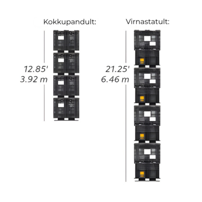- Ruumi kokkuhoid. Konteinereid saab virnastada ja transportida kompaktselt. Täidetuna võib üksteise otsa virnastada kuni neli konteinerit!